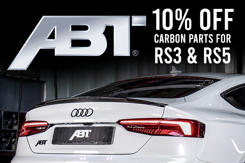 ABT Sportsline is kicking off a brand new Memorial Day Sale! For a limited time, save an additional m10% on tons of ABT Carbon Fiber Aerodynamic parts for Audi RS3 and RS5 models! This includes parts like rear spoilers, front lips, grille add-ons, rear skirts, and more!