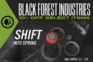 The BFI Spring Sale is here! To help celebrate the warmer season ahead, Black Forest Industries is offering 10% off most of their catalog — this includes killer deals on Spacers, Wheel Bolts, Shift Paddles, Shift Knobs, Suspension components, Shift...