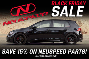 From now until January 2nd, you can save 15% on performance parts from Neuspeed! Take advantage of some of the lowest prices all year on a wide range of Neuspeed parts including exhaust, springs, intakes, and more! Since 1975, Neuspeed...