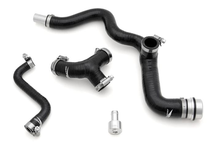 This complete silicone hose kit is designed to replace all of the crumbling plastic and rubber awfulness that is the factory breather hose system.