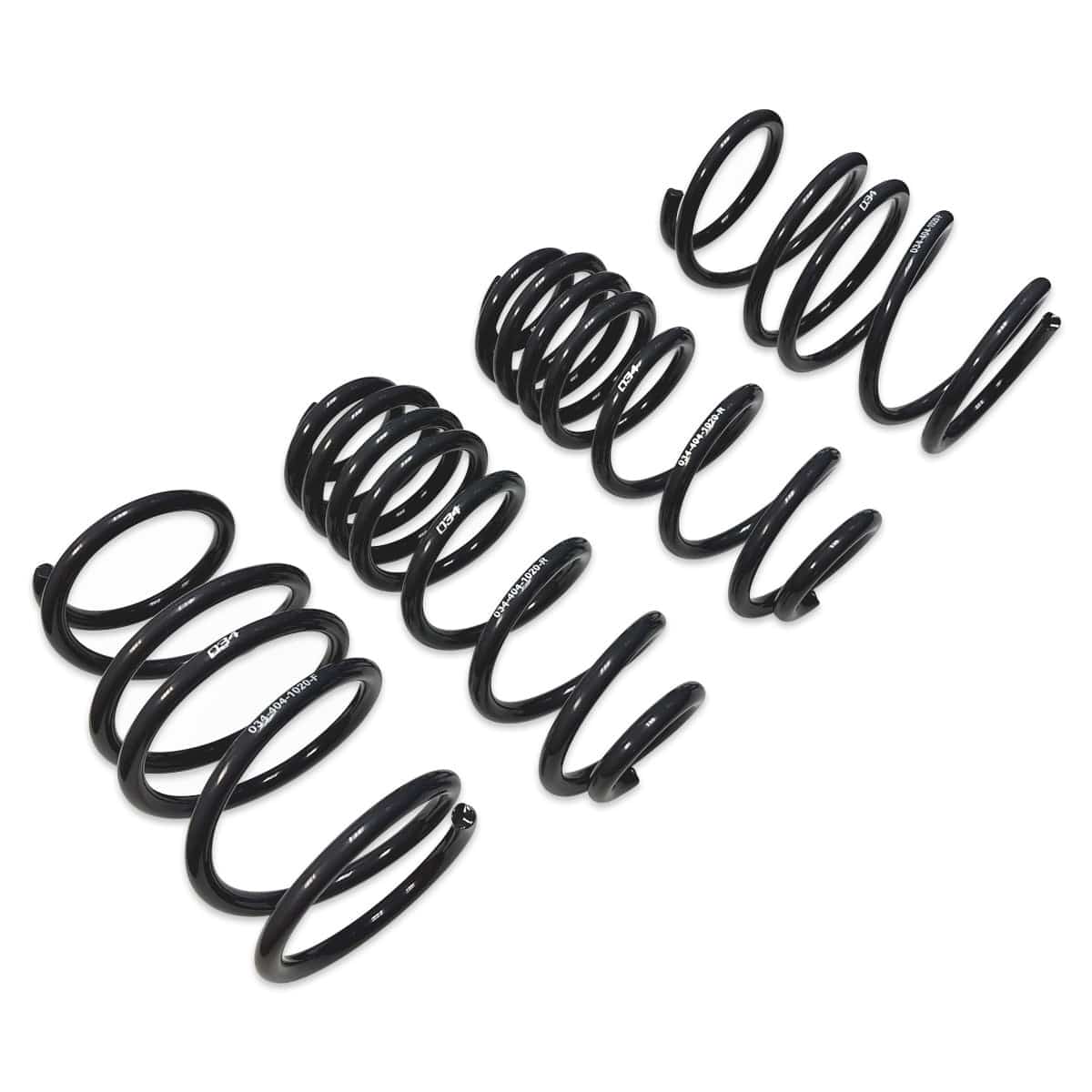 When designing 034Motorsport Dynamic+ Lowering Springs, we are not simply making a shorter spring. With lowering springs, the misconception is that the overall coil length is shorter. The spring itself is actually the same length as the OEM spring but they are designed with some of the coils in the spring closer together, which "stack" under weight, giving you the lowered ride height. Since the coils are physically closer to one another, when the suspension compresses and decompresses, the coils stack and rise.