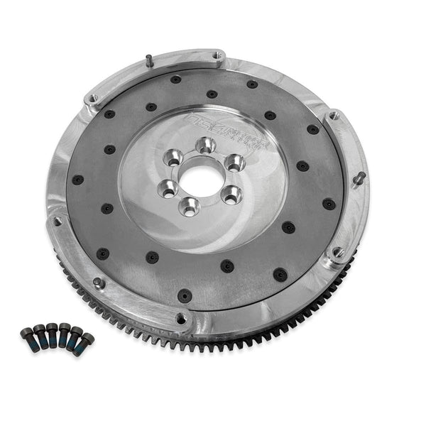 This flywheel is machined in-house at 034Motorsport from billet aluminum and engineered to be a direct high-performance replacement for the failure-prone dual-mass factory unit. Includes replaceable steel friction surface and steel ring gear. This Billet Aluminum Lightweight Flywheel Kit includes new flywheel bolts.