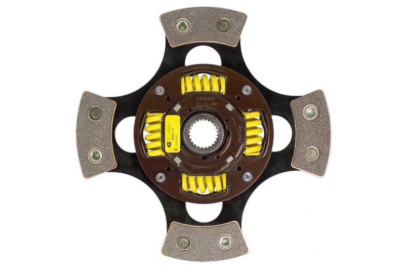 4224106 is a 4-pad spring-centered race disc made with high quality, ceramic friction materials. The engagement is harsher, but shifting is faster. The heavy duty torsional dampening springs are stronger, in most cases, than standard springs and are provided in the best sizes and spring rates to suit the application. The race disc features a heat-treated spring steel drive plate and is well-suited for the smaller disc sizes in smaller engines.