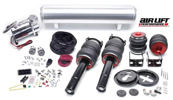 Another great feature is that the Performance Series shocks/struts have threaded bodies with adjustable mounts; this allows you to alter the factory set heights to better suit your situation without sacrificing suspension travel. As with the Slam Series kits, Air Lift Performance provides everything needed for easy installation. And while everyone loves the way their car looks laid out on the ground, these Performance Series kits are best enjoyed while in motion! The huge range of damping, mated with our progressive rate air springs, allows you to have a comfortable ride on the highway. And with the twist of the damping knob, you have a track-ready suspension poised to cut a fast lap.