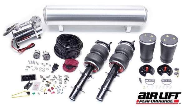 Another great feature is that the Performance Series shocks/struts have threaded bodies with adjustable mounts; this allows you to alter the factory set heights to better suit your situation without sacrificing suspension travel. As with the Slam Series kits, Air Lift Performance provides everything needed for easy installation. And while everyone loves the way their car looks laid out on the ground, these Performance Series kits are best enjoyed while in motion! The huge range of damping, mated with our progressive rate air springs, allows you to have a comfortable ride on the highway. And with the twist of the damping knob, you have a track-ready suspension poised to cut a fast lap.