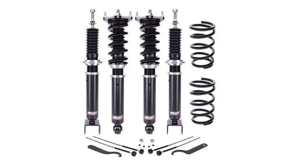 Kit Includes: Complete Coilover kit with set of (4) front and rear dampers, (4) coil springs, (2) adjustable rear coil spring perches, (2) spanner wrenches, (4) damping adjustment knobs and (4) damping knob grommets.