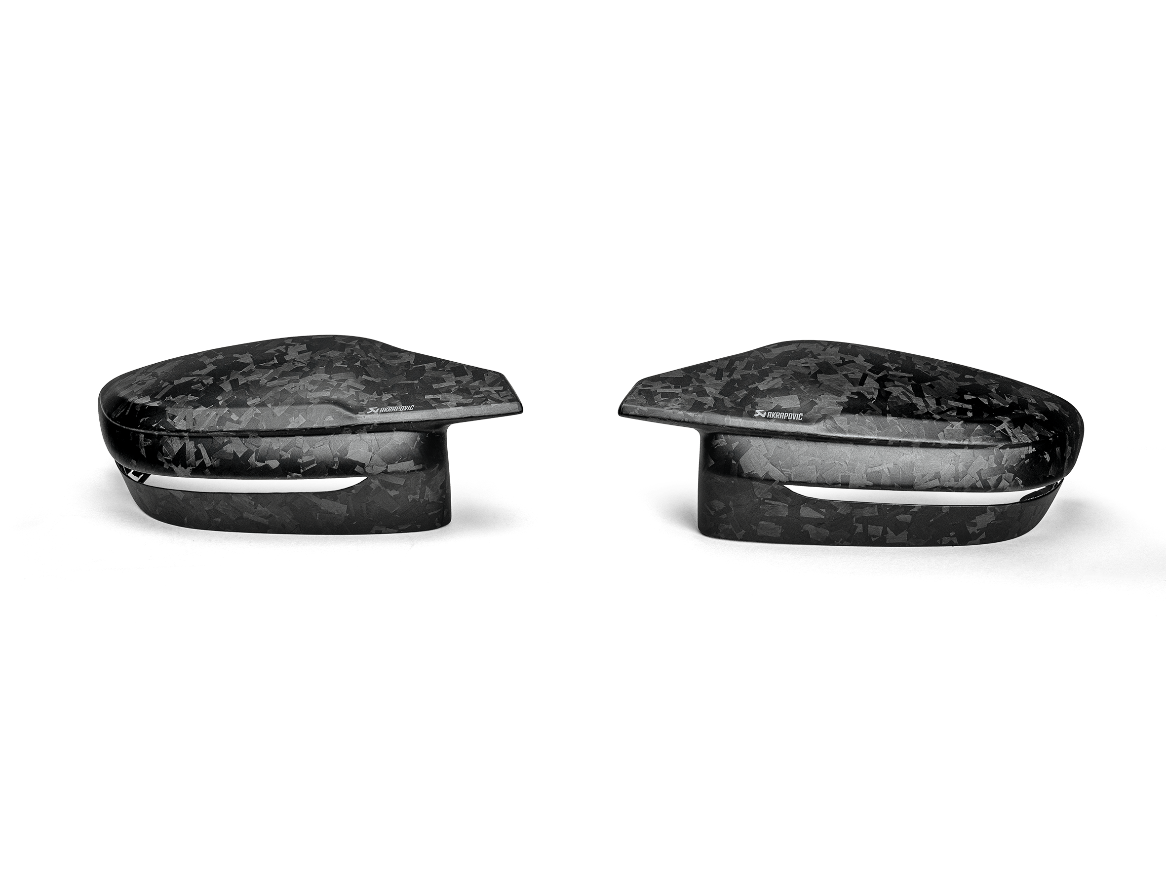 To further personalise the BMW M2 Coupé, M3 or M4. These stunning mirror caps have been designed especially for the car, and they match the lines beautifully. Constructed from high-grade, lightweight chopped carbon fibre, they are hand-crafted by highly skilled specialists and make a unique addition to the car, while also complementing the tailpipes of the Slip-On Line (Titanium) exhaust, the rear wing, and the other Akrapovič products in the carbon-fibre accessory range. They are available in high-gloss or matte finish.