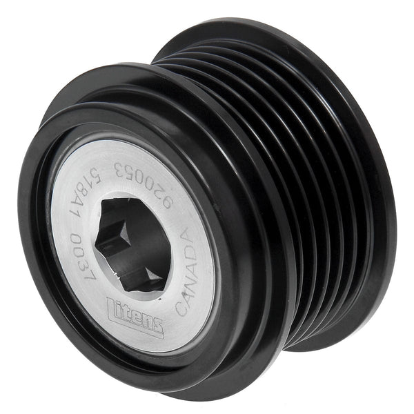 Includes a patented internal torsion spring that is tuned specific to each application. Includes a one-way clutch that enables the alternator to coast freely if belt speed suddenly decreases, such as an engine shut down or transmission shift.