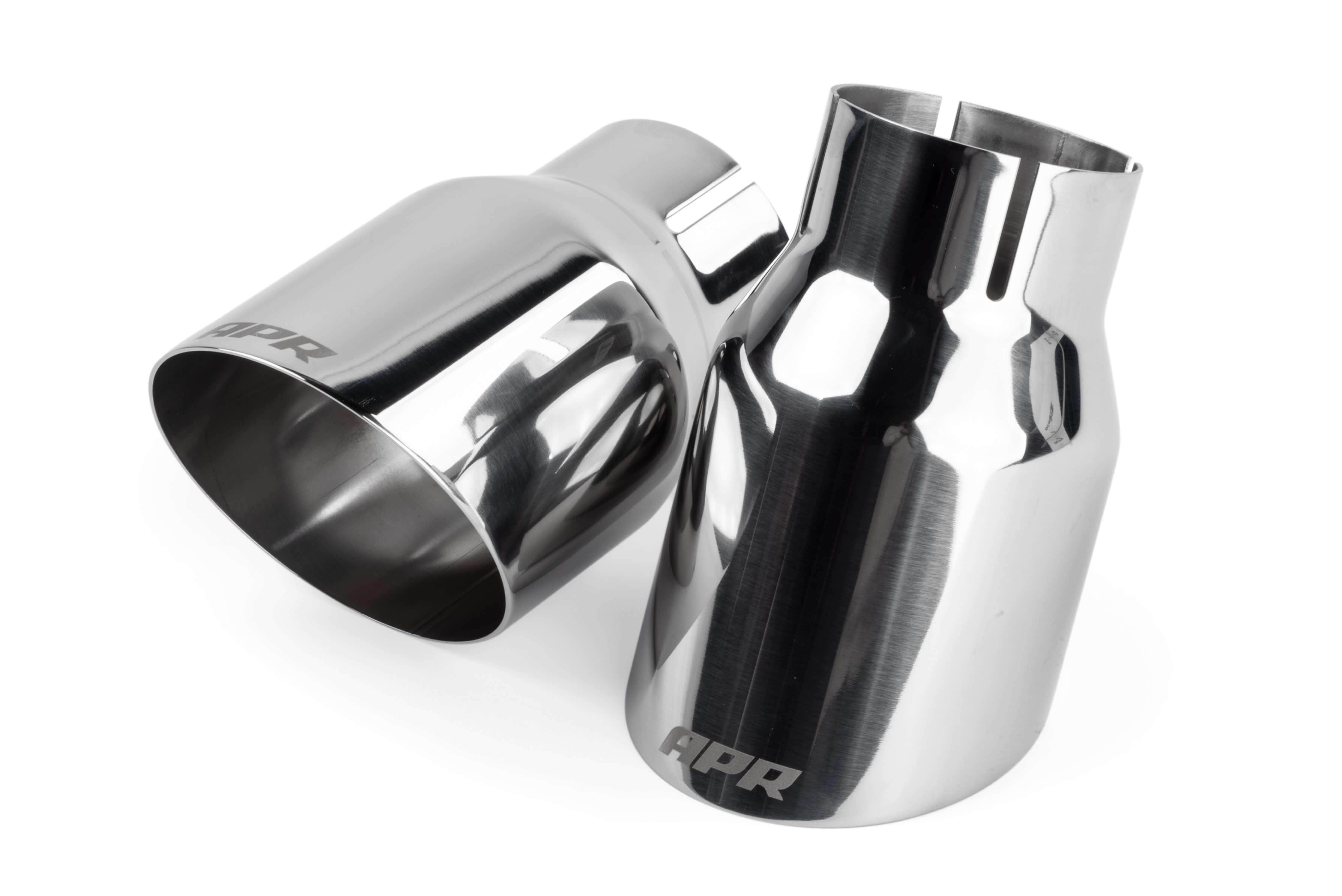 Our polished slash-cut single-walled 3.5" exhaust tips upgrade the rear of the vehicle dramatically. The motorsport-inspired tips tuck nicely into the factory valance, gently following the valance's curves and demanding all the right attention in all the right places. Each tip features a laser etched APR logo. Each kit is sold as a set of two tips.
