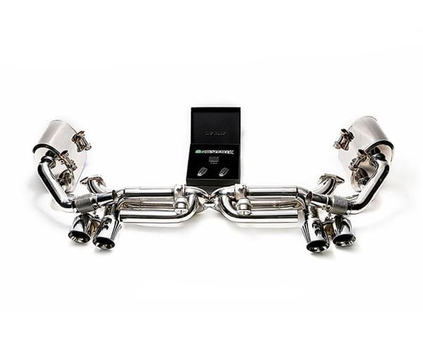 To enhance your 991.2 Turbo by adding the Armytrix exhaust system to increase power, reduce weight, and improve sound. This precision-made performance system delivers more power, especially in the low and mid rev range, the effect on the sound is significant, adding a deep resonant sporty sound, but at the same time neutralizes the annoying frequencies in the most critical rpm range. Complete the look with a set of four sporty chrome polished silver tailpipes. Armytrix exhaust systems differ from other brand' exhaust systems with their unique "Throttle Pedal Sensor and Engine RPM Signal Auto Functions". Through this system Armytrix offers car owners a better launch-start without losing backpressure by automatically closing the valves at low rpm. When your car is driving at high speeds, the valves will automatically open to increase air flow for better performance (hp & torque gained) and sound. Car owners can set their own timing for valves to automatically open and close by engine rpm and how deep they press the gas pedal. It' a new innovative system that brings your car to a different level. With the Armytrix you are not getting just an exhaust system, you are getting a driving system unlike any you have experienced before. When car owners turn on the race mode (valves opened), the gas goes through the section of straight pipes. This is where you get the incredible race sound and performance gain. In full throttle and it' straight pipe all the way, which means you will be expecting the LOUDEST sound performance you' ever hear!