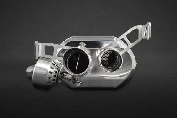 CAPRISTO Exhaust systems are engineered and manufactured utilizing advanced 3D Laser-Scanning, CAD Design, Digital prototyping, and CNC-bending/milling at our factory in Germany. Each system is made of high-grade T309 (1.4828) Stainless Steel and hand polished to a mirror finish. After extensive research, this specific alloy was chosen for its sonic resonance properties, low weight, and durability which are close to the properties of Inconel (used in F1).