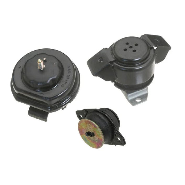 This is a complete kit of engine mounts for MK2 8v/16v, G60 and B3 16v cars. It includes the factory solid rubber front mount, a G60 solid trans mount, and the late hydraulic rear mount. This combo gives the best of performance and ride quality and is a bolt in for all MK2 cars, G60 and B3 16v no matter their year or original mount set up.