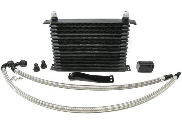Everyone knows that heat is the enemy of your automatic transmission. And everyone knows that higher power levels generate more transmission fluid heat. Now you can extend the life of your automatic transmission by installing the new BMS High Capacity Trans Cooler kit. This unique plug and play kit replaces your factory coolant to trans fluid heat exchanger with a high capacity fender mounted air to trans fluid radiator. Includes all mounting hardware, lines, and coolant caps required for installation. Installs inside the driver side fender providing ample airflow over the large cooling core via existing openings. The result is dramatically reduced transmission temperature and extended transmission life. This kit is strongly suggested for any BMW E chassis automatic running larger than factory turbos.