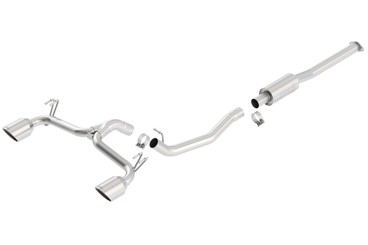 Features bright chrome on T-304 stainless steel tips. Borla Cat-Back & Axle-Back exhaust systems feature patented straight-through and multi-core technology to unleash hidden horsepower. Increased exhaust velocity adds power, driving excitement, fuel economy, and the distinctive Borla Sound of Power respected by motoring enthusiasts everywhere. Each system is built from premium T-304 austenitic stainless steel, superior to T-400 series knockoffs (such as 409), to give you the absolute best in performance and durability. Ultra-smooth mandrel bends ensure maximum flow & power, and precision computer-controlled CNC manufacturing ensures an accurate fit. Best of all, Borla stands behind every system with a Million-Mile Warranty. Just what you?d expect from the world?s most experienced (and most winning) exhaust brand.