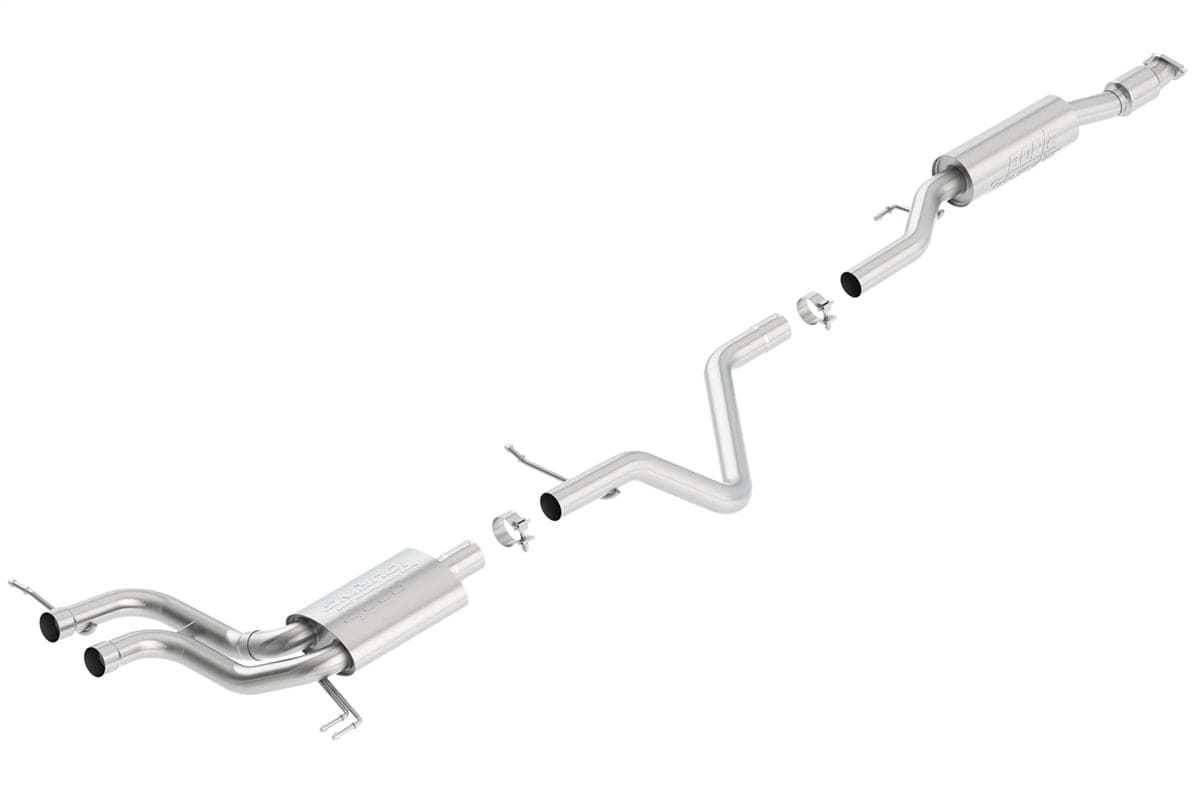 This system uses the factory bezels and does NOT come with tips. Borla Cat-Back(tm) exhausts feature patented, straight-through and multi-core technology to unleash hidden horsepower. Increased exhaust velocity add power, driving excitement, fuel economy and the distinctive Borla Sound of Power respected by motoring enthusiasts everywhere.