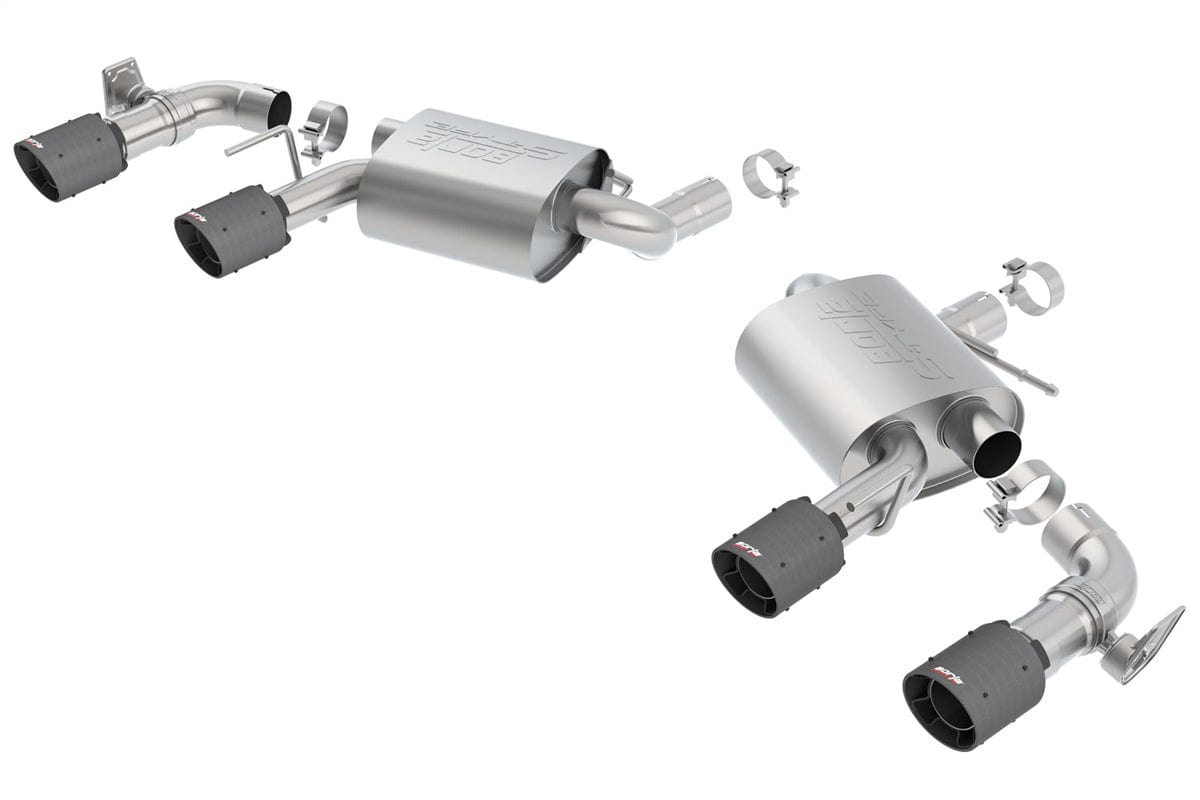 This system is for vehicles equipped with dual tips and NPP (dual mode exhaust) valves. This system features functioning NPP valves. It features unique Borla carbon fiber tips with black anodized centers. Borla Cat-Back(tm) & Axle-Back exhaust systems feature patented straight-through and multi-core technology to unleash hidden horsepower. Increased exhaust velocity adds power, driving excitement, fuel economy, and the distinctive Borla Sound of Power respected by motoring enthusiasts everywhere. Each system is built from premium T-304 austenitic stainless steel, superior to T-400 series knockoffs (such as 409), to give you the absolute best in performance and durability. Ultra-smooth mandrel bends ensure maximum flow & power, and precision computer-controlled CNC manufacturing ensures an accurate fit. Best of all, Borla stands behind every system with a Million-Mile Warranty. Just what you'd expect from the world's most experienced (and most winning) exhaust brand.