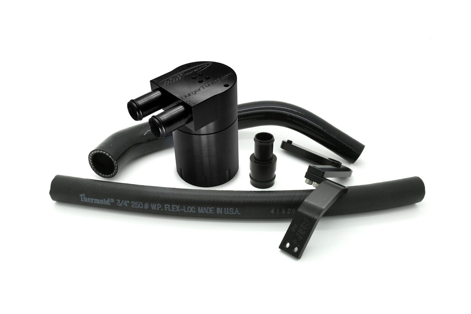 The solution to this problem has finally arrived. The BMS oil catch can. While there are other catch cans on the market they all fall short in various areas. Some are mounted on the hot/turbo side of the motor preventing proper vapor condensation. Others utilize hoses that are too small and runs that are too long to allow proper PCV ventilation causing internal motor / ring sealing issues. Some have insufficient or no internal baffle system while others have internal baffles systems that are too restrictive. Some even bypass the PCV system all together venting crankcase gas and odor to atmosphere. Most are simply repackaged oil catch cans from smaller / lower power motors shoe horned in to place in the engine bay.