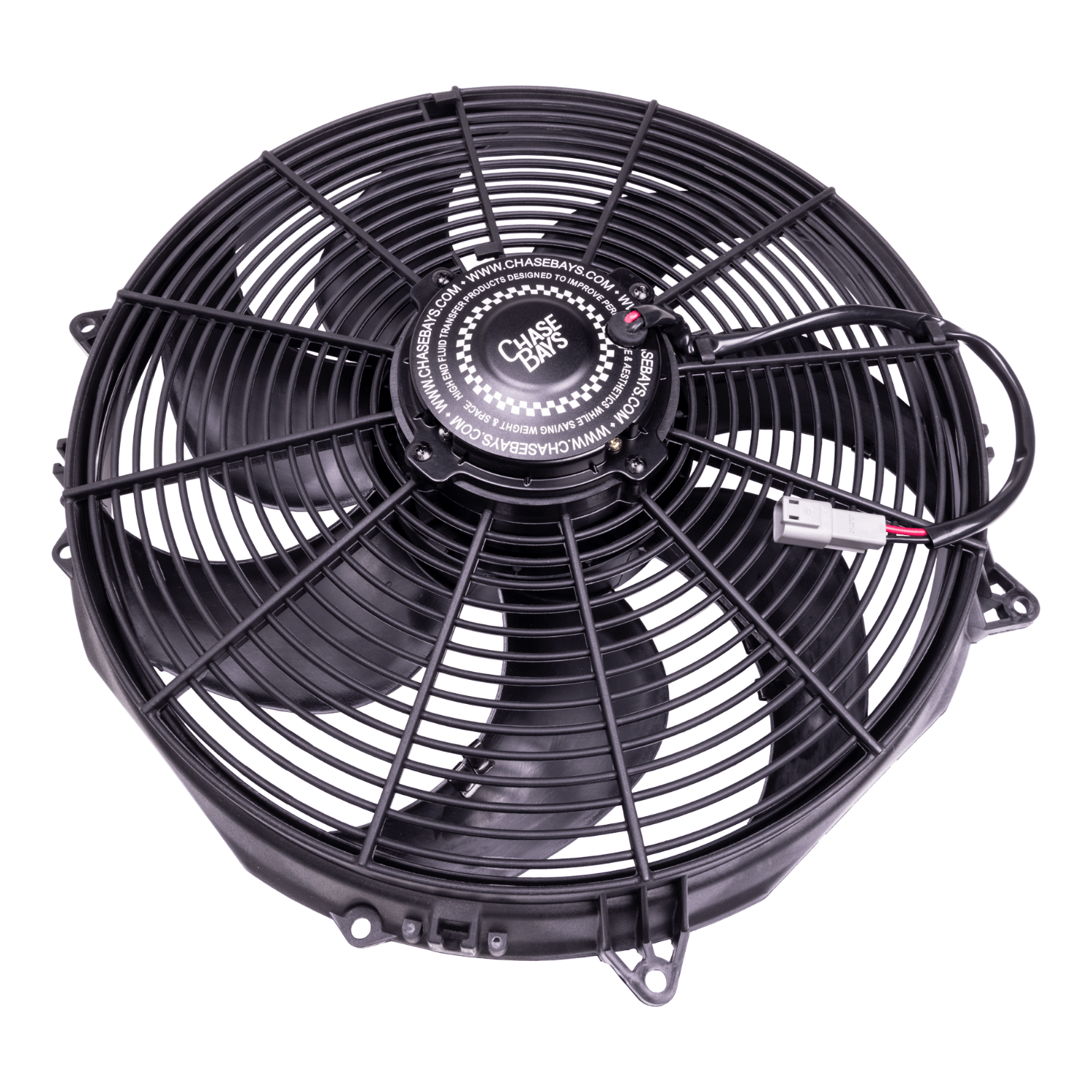 Chase Bays 16" Ultra High-Flow Electric Cooling Fan was designed to meet the extremely high standards that both Chase Bays and our customers require out of the very important aspect of cooling. We also wanted to integrate a proper weatherproof motorsport connector, Deutsch DT series. MOST fans even high performance targeted ones come with the worst connectors ever and they cause connectivity issues, so we've eliminated that risk entirely with the trusty Deutsch DT.