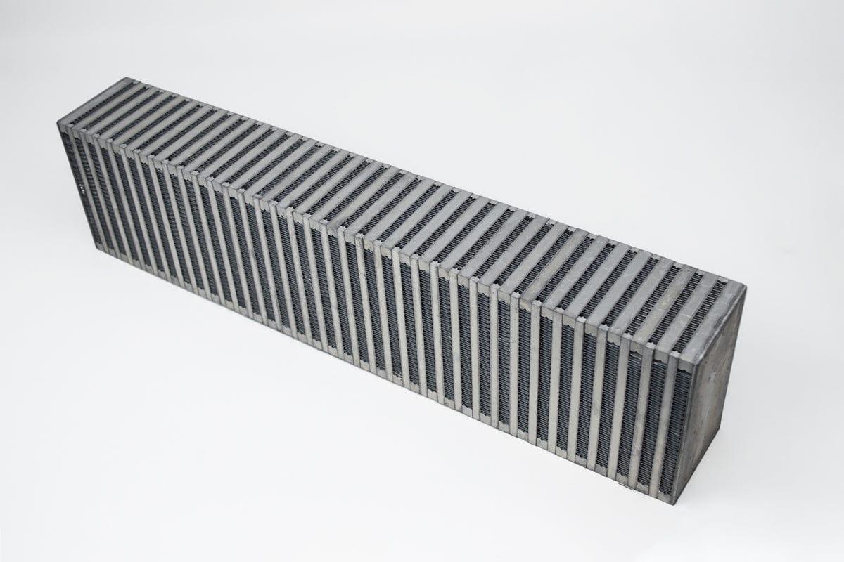 CSF Bar & Plate Intercooler Cores are used by some of the most renowned tuning and performance companies in the industry. This 24" x 6" x 3.5" Vertical Flow Core is rated for 800 WHP and the perfect fit for your custom high-performance intercooler. Each CSF Intercooler core is pressure tested at 120psi for maximum reliability in extreme boost applications. Hand-Built using jigs & fixtures for a perfectly straight core in a clean room using gloves inside the CSF factory to ensure proper brazing and a clean surface for future welding. Featuring a multi-louvered high precision staggered fin design (for both ambient and pressure sides of the core) for the best heat transfer possible.