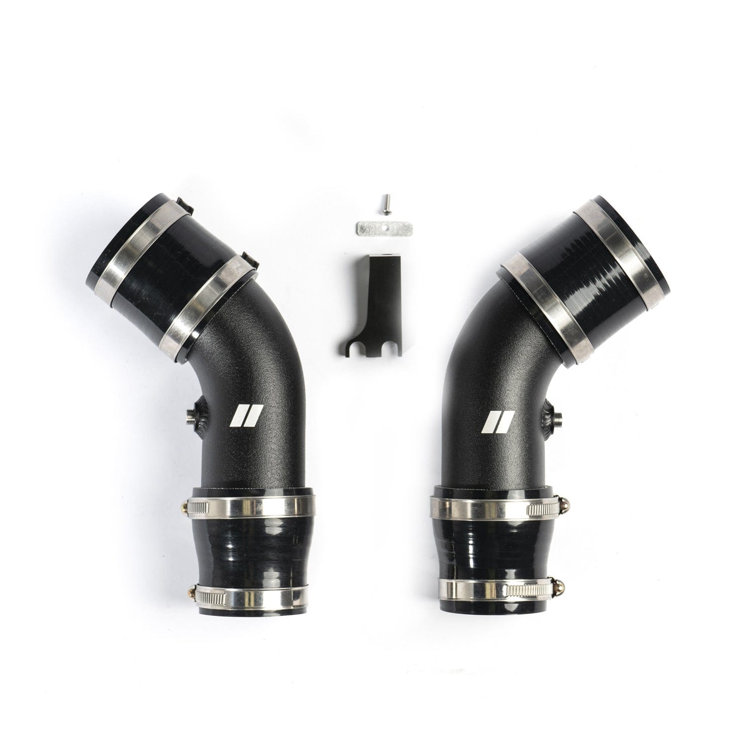 The OEM plastic charge pipes that are prone to failing when going beyond stock boost levels. Our charge pipes are mandrel bent aluminum tubing with 1/8′ NPT bungs for water injection.
