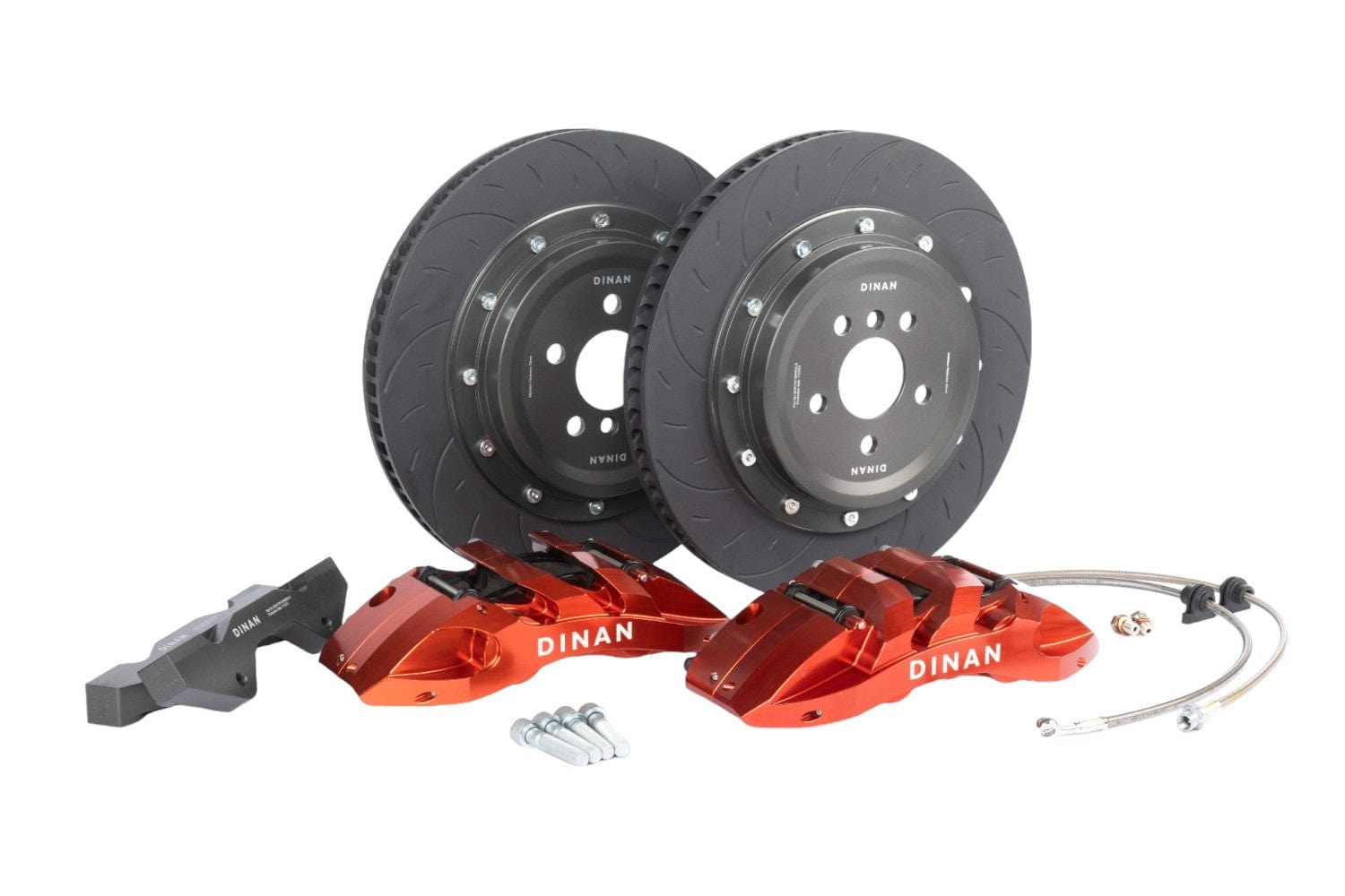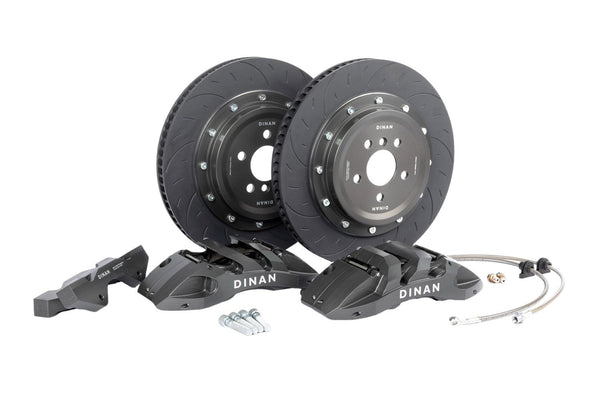 Dinan's 395x34mm (6-Piston) and 370x32mm (4-Piston) 2-piece Big Brake Kits (BBK) are an ultra-high-end solution for maximum stopping power. Each feature-packed solution is specifically tailored to your vehicle and provides exceptional stopping-power in a wide operating range from daily driving to professional racing. Because of this, the system provides the correct brake bias and integrates seamlessly with the ABS and stability systems which is critical under emergency braking situations. This upgrade handily out-brakes, out-lasts, and out-performs any OEM brake system iteration, and rivals much more expensive top-tier systems. Whereas most systems on the market either make heavy sacrifices to either look fancy, cut weight, or cut costs, the Dinan system is designed to simply brake better, last longer, and stand the test of time!