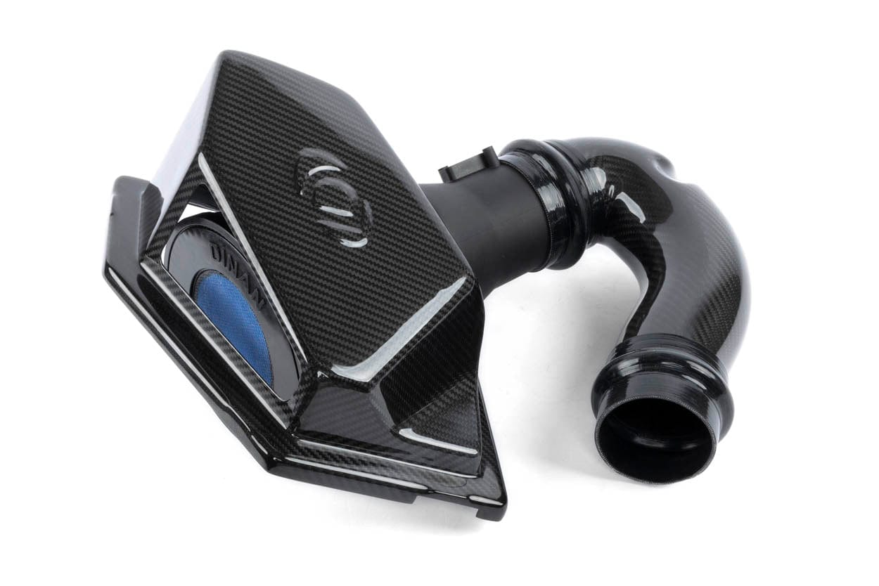 Looking for more sound than what can be attained from the standard Dinan closed box intake for F2x/F3x B46/B48 powered vehicles and don't want to sacrifice all the performance gains or the beautifully crafted carbon fiber design in the process? This semi-open variant of the same intake meets those demands using a revised lid with an additional auditory port so those intoxicating turbo noises can be more easily heard.