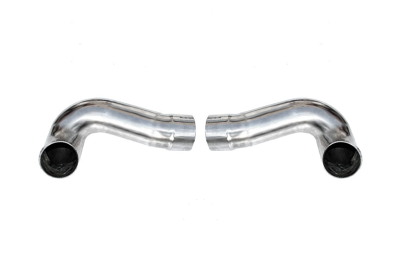 When looking to save a lot of weight and give your 997.2 Carrera an aggressive and race like sound, the side muffler bypass pipes are your ticket to accomplishing that goal. Replaces the heavy and restrictive factory side/secondary mufflers for increased exhaust flow and weight savings.