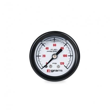 Compliment your Grams Performance fuel pressure regulator with the all so important fuel pressure gauge! This easy to read, matte black stainless steel gauge measures 0-120 psi (8.27 bar) and is silicone filled to accommodate high vibration applications. While adjusting the regulator, the Grams Fuel Pressure Gauge will provide you an accurate fuel pressure reading at a glance.