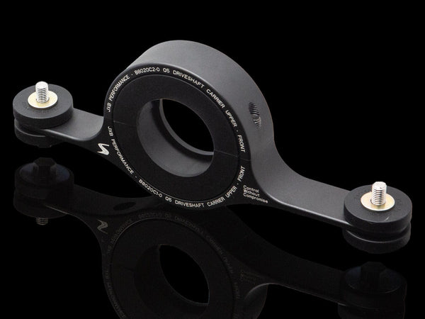 The stock center support bearing carrier holds the driveshaft in place with rubber so thin about 20 lbs. of force moves it from center to the end of its travel. While that’s great for making sure no NVH makes it to the cabin, the stock bushing is extremely prone to failure, especially in harsher climates and on higher-powered cars. Even on the best-kept cars, the stock rubber bushing sags, dry rots, and cracks by the time it’s 10-15 years old. When the bushing lets go, it leads to excessive vibrations and clunking which can damage the transmission and rear diff. To make matters worse, the stock carrier is molded onto the center support bearing, leading to costly driveshaft replacement.