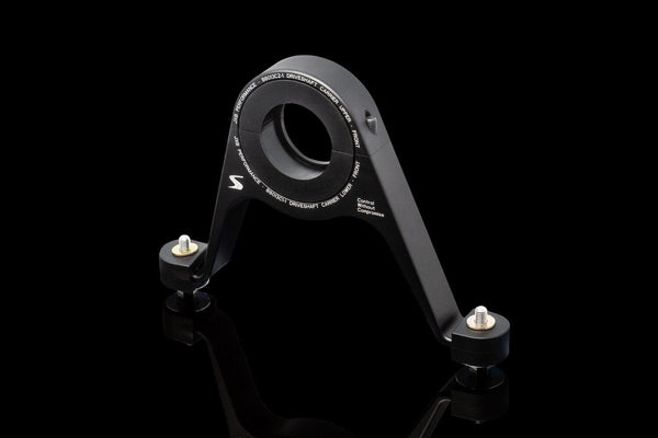 The stock center support bearing carrier holds the driveshaft in place with rubber so thin about 20 lbs. of force moves it from center to the end of its travel. While that’s great for making sure no NVH makes it to the cabin, the stock bushing is extremely prone to failure, especially in harsher climates and on higher-powered cars. Even on the best-kept cars, the stock rubber bushing sags, dry rots, and cracks by the time it’s 10-15 years old. When the bushing lets go, it leads to excessive vibrations and clunking which can damage the transmission and rear diff. To make matters worse, the stock carrier is molded onto the center support bearing, leading to costly driveshaft replacement.
