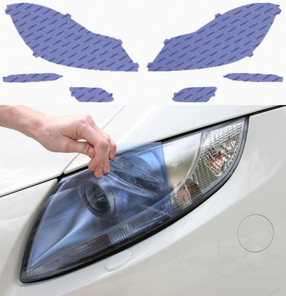 Our headlight films are made from impact-resistant 12 mil protective film with adhesive-backing to protect your lights from cloudiness that occurs over time and road debris. The adhesive on our films are designed to be extremely forgiving. You can apply numerous times during initial application to get the installation right. These precut kits cover both sides and also include the lower lights.