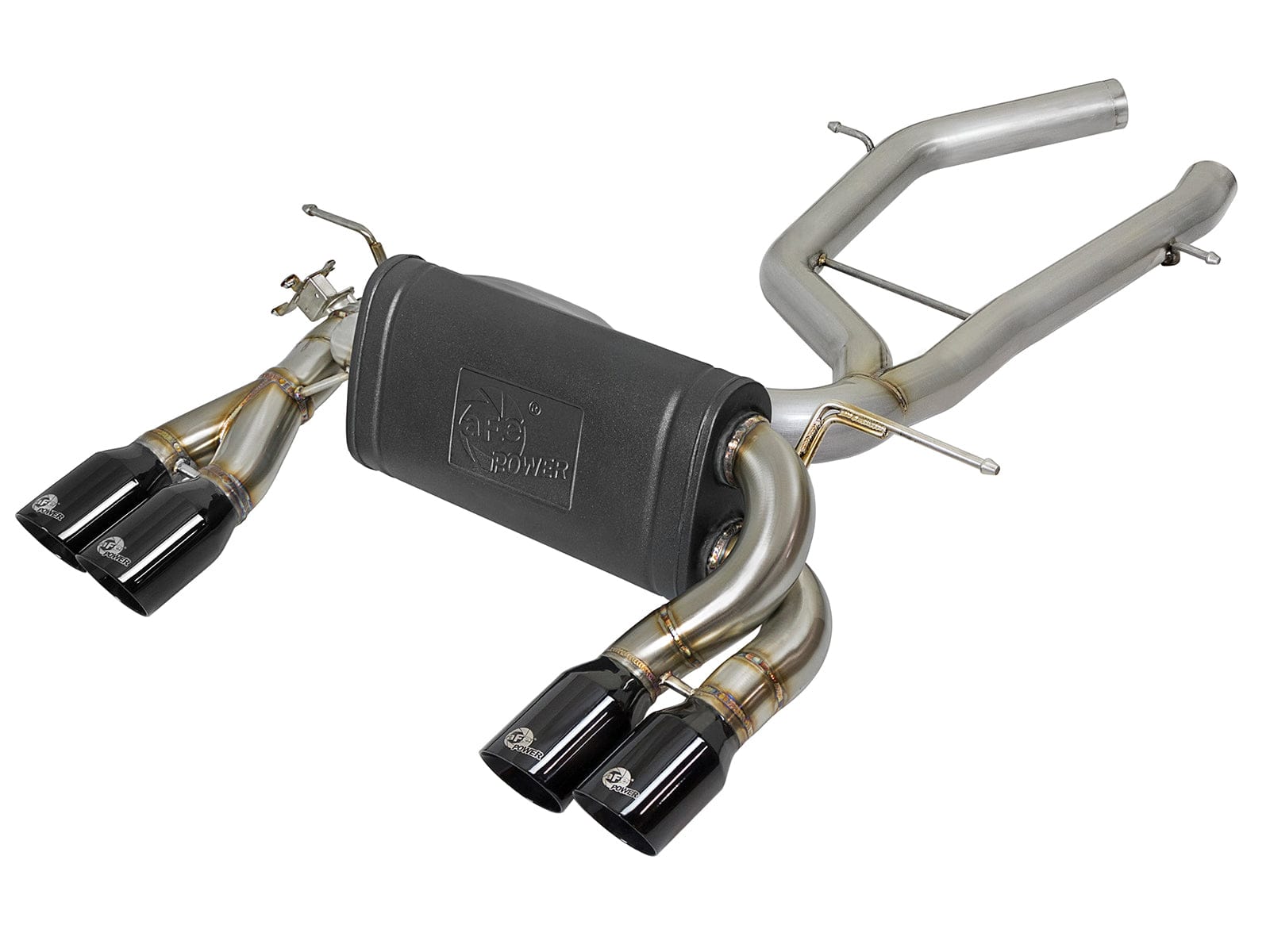 Finishing off this system are Quad 3-1/2" diameter, 304 stainless steel black tips with laser-etched aFe POWER logos.