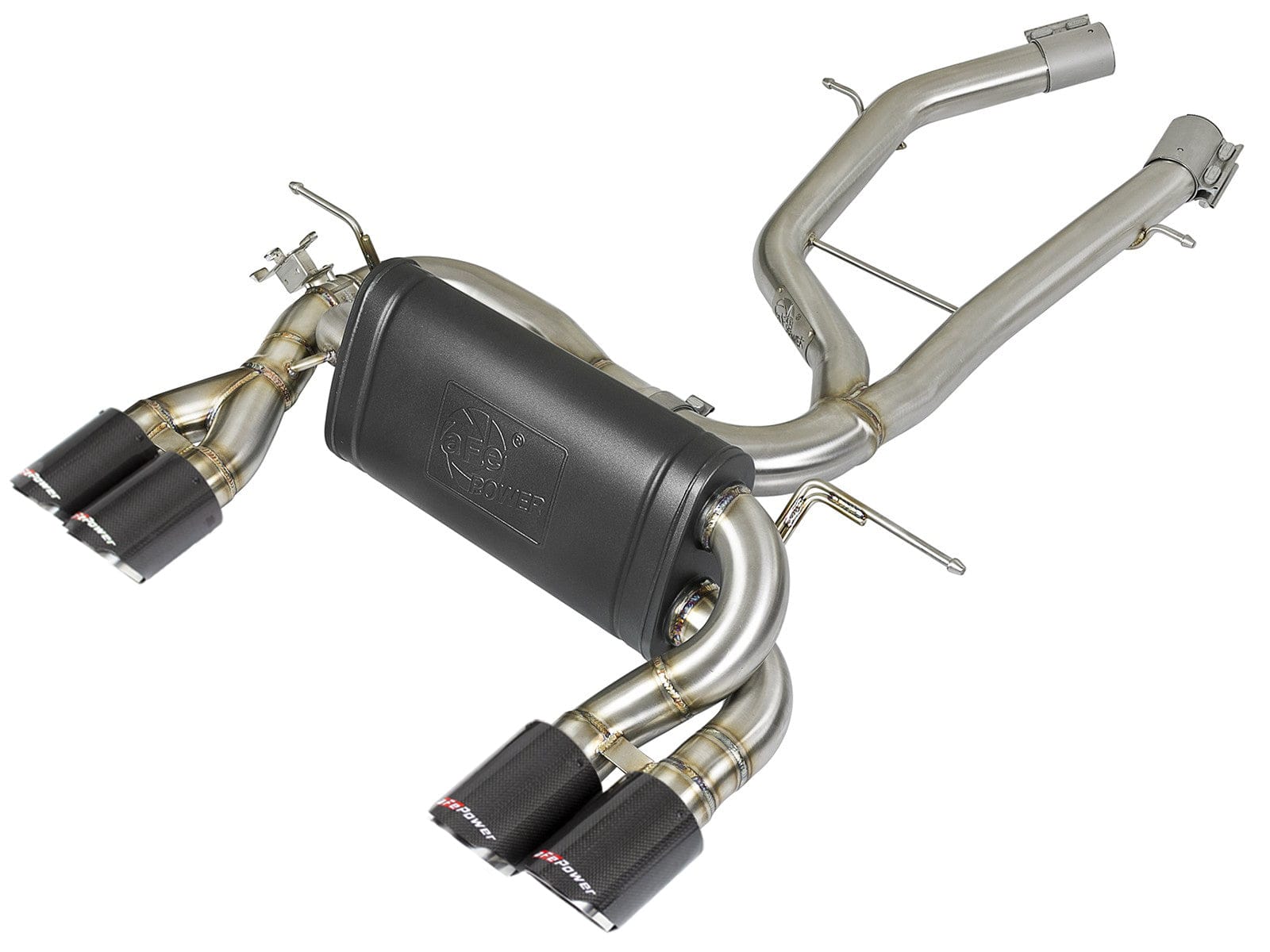 Finishing off this system are Quad 3-1/2" diameter, carbon fiber tips with an aFe POWER logo.