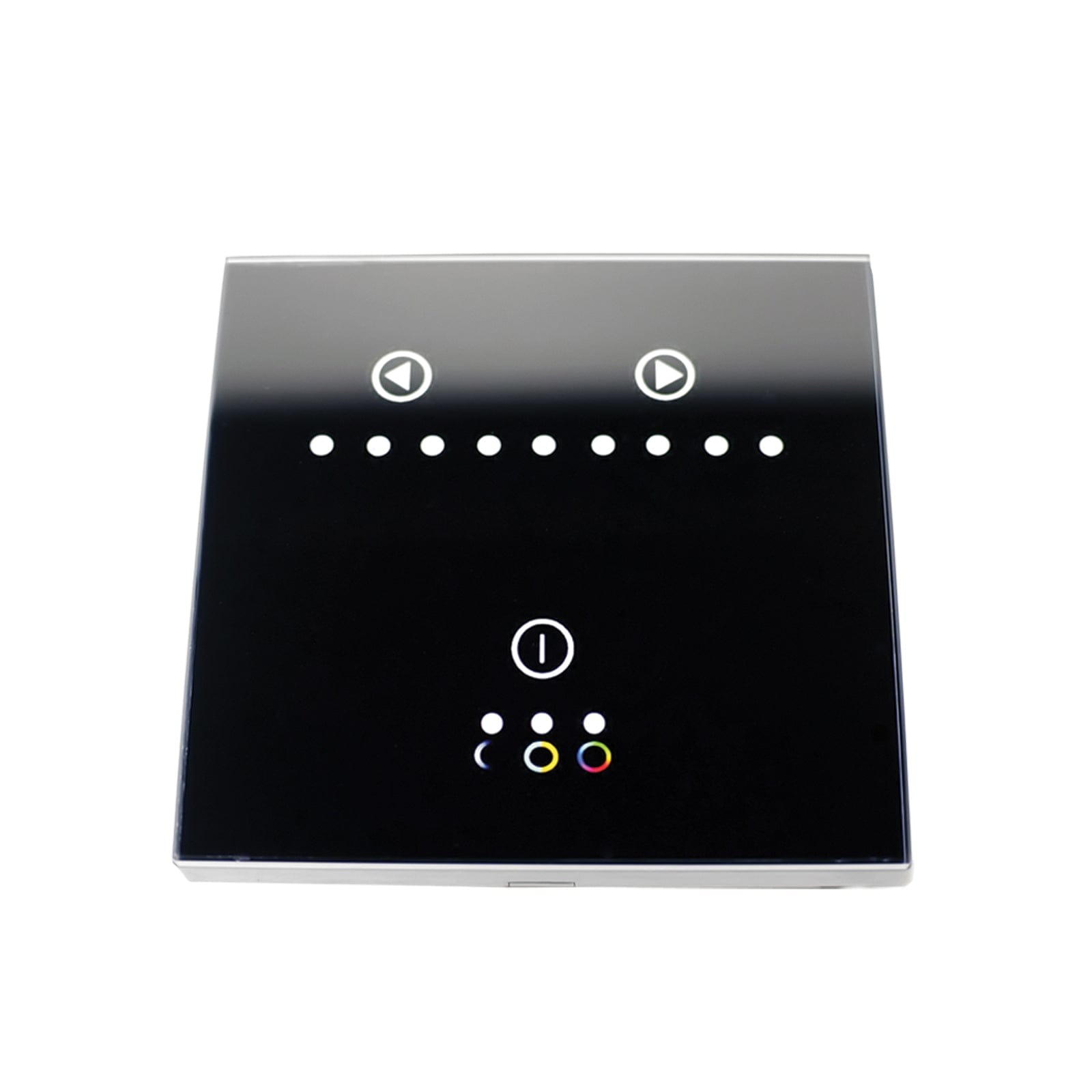 The ORACLE Touch Panel RGB Dimmer is a newly developed high-end controller. It adopts a glass panel design, giving it a modern, sleek appearance. It has a high precision touch control chip, that increases touch sensitivity and reduces mistaken triggers. These control panels are specially used for controlling a variety of LED Lighting, such as RGB Flex LED Lighting Strips, wall washer lights, panel lights, etc. It features easy connection and user-friendly functionalities including jump changing, gradual changing, strobe, flash, and other modes.