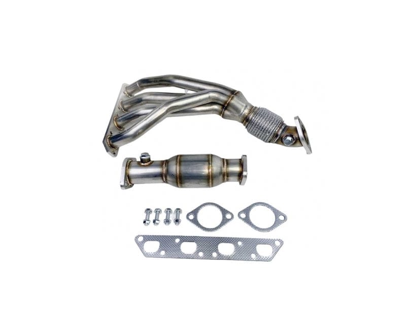 Our new Gen 2 Mini header is manufactured out of 304 Stainless Steel Sport Exhaust Headers for MINI Cooper S R50, R52, R53 2002-06, including all 304 stainless steel flanges. For supercharged engine and manual transmission models. There are several ways to produced a cheaper header and all of them are inferior to a high quality header and generally succumb to failure in a short period of time. Easy ways to lower the cost of a header are to use inferior 201 stainless steel and mild steel flanges which rust. The woven flex joint is cheaper and definitely more prone to failure. Our headers do not use any of these items. These high performance headers were developed in Germany by a leading tuner and are manufactured out of heavy gauge T304 stainless steel for long life. Each set of headers includes a high quality 200 cpsi Euro 5 metallic catalytic converter. This catalytic convert is expensive but its quality is top - chances of a check engine light is greatly reduced.