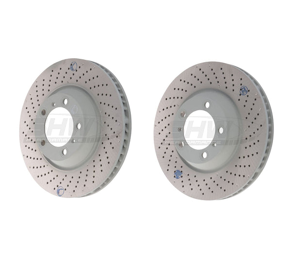 SHW Performance Rear Cross-Drilled Monobloc Brake Rotor Kit (322x28) - Porsche / 993 / 911 / Turbo / 3.6L (96-98) (NLA) | PRL39937-PRR39938