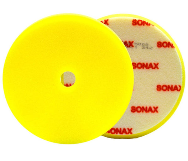 SONAX Yellow Dual Action Polishing Pad is specifically designed for use with dual action polishers. The beveled edge of the pad allows for more consistent control during the buffing process. The center hole prevents heat build-up and makes centering the pad on the polisher much easier. Best for use during the polishing step to correct moderate to minor paint imperfections