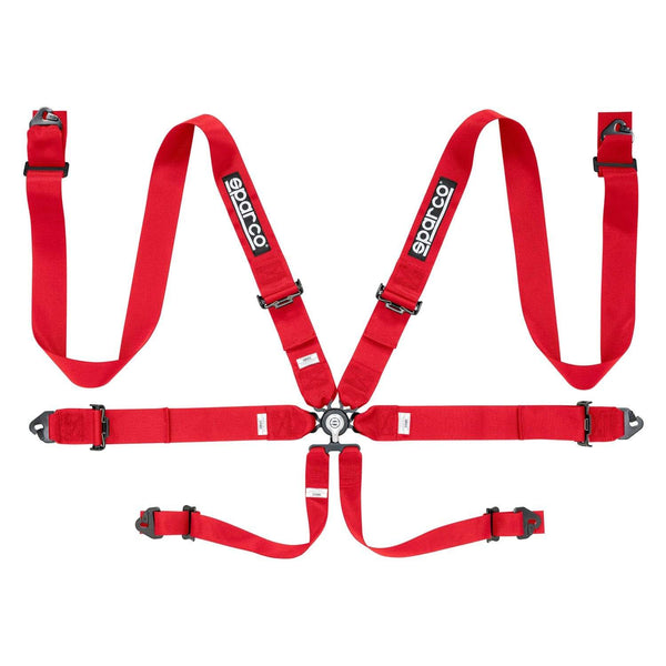 Sparco’s full line of harnesses works in unity with our competition seats. Crafted from high-quality fabric and fitted with durable fasteners, each harness restrains the body for added safety and protection. Our 6-point harness features 3-inch lap and shoulder straps that attach in the center using an aircraft-quality quick-release buckle with integrated anti-submarine belts. The lightweight steel adjusters allow for smooth, quick adjustments and perfect clamping. Each belt attaches to the frame using snap-on fixings. Available in pull up and in three colors: black, blue and red.Features:
