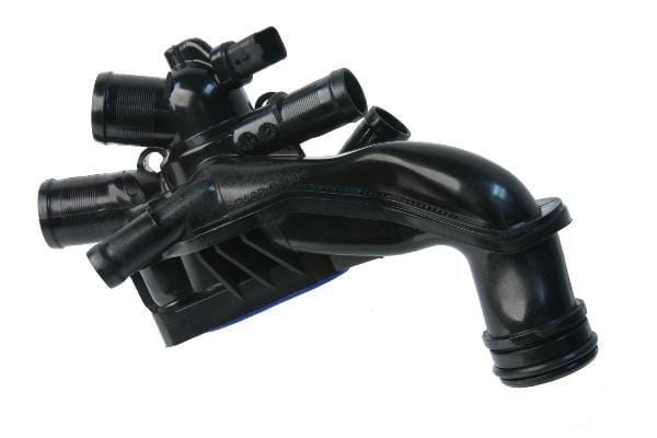 - Thermostat housing assembly is manufactured to factory housing dimensions for easy bolt-on installation and reliable hose connections