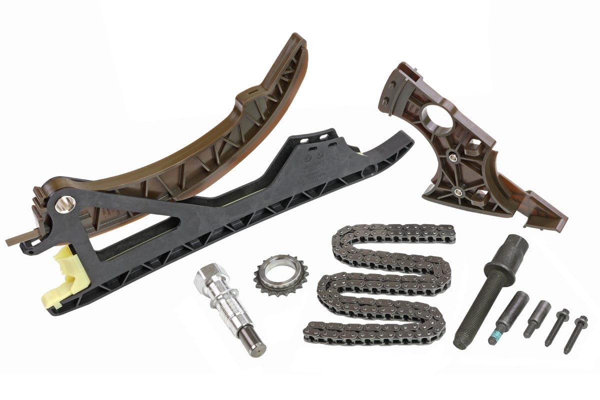 OEM Components in this BMW Chain Kit 43-04: Timing Chain, Chain Tensioner and Guide Rail, Slide Rail, Chain Tensioner, Bolt, Bolt, (2) Torx Screw, Hex Bolt, Sprocket
