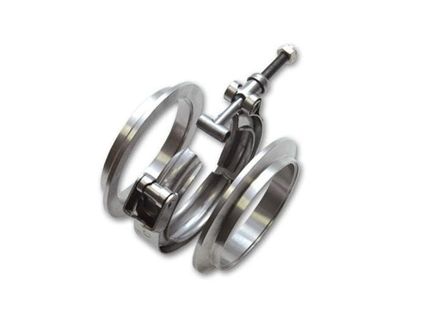 The V-band clamp design allows for a gasket free seal and the quick release feature of these clamps makes swapping parts at the track quick and easy.