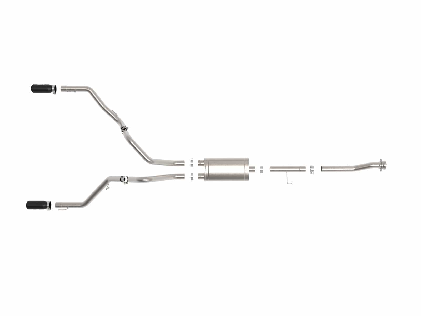 This cat-back exhaust system is constructed of 3 IN mandrel-bent 304 stainless steel tubing for maximum strength and durability. This system features a high-flow 409 stainless steel muffler, producing a aggressive sound. Finishing off this exhaust system are dual 4-1/2 IN diameter black 304 stainless steel clamp-on exhaust tips. The tips features an aFe POWER logo plate riveted on for a unique style. This system produces an aggressive sound unleashing all available horsepower and torque. Utilizing a factory style flange and hangers this system is a direct bolt-on system, which requires no cutting or modifications for a hassle-free installation. Utilizing state-of-the-art computer-aided design technology, this exhaust system is designed for custom, high tolerance factory fitment. 100% MIG-Welded for race-proven strength and durability.
