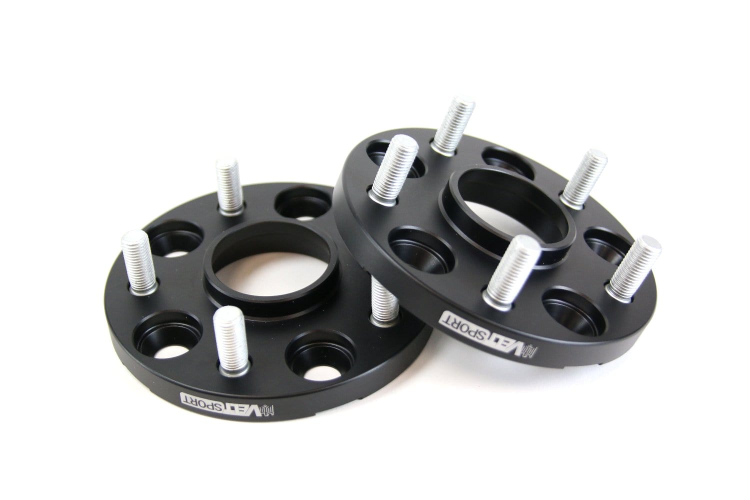 The Velt Sport wheel adapter set converts a 5x112 VW/Audi to fit 5x114.3 wheels. These adapters have a 66.56mm hub size with a 57.1mm wheel center bore allowing hubcentric fitment. The 5x114.3 bolt pattern is studded with a choice of lugs.